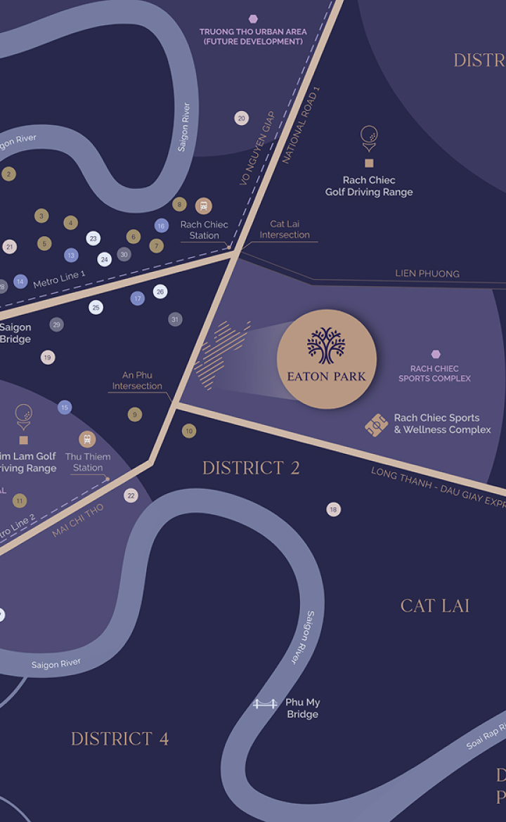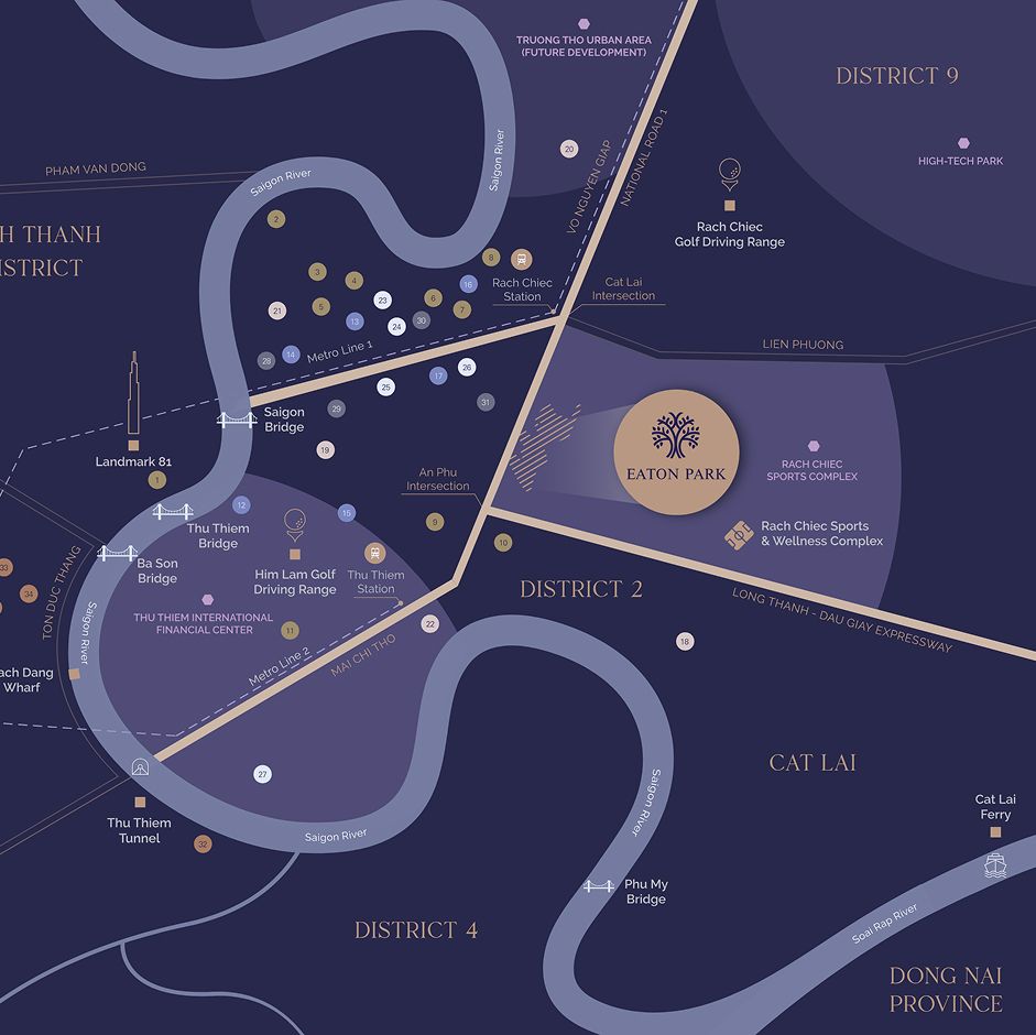 Nhờ vị trí này, Eaton Park nằm ở tâm điểm hạ tầng Khu Đông, thừa hưởng đầy đủ tiện ích hiện tại và tiềm năng phát triển tương lai.
